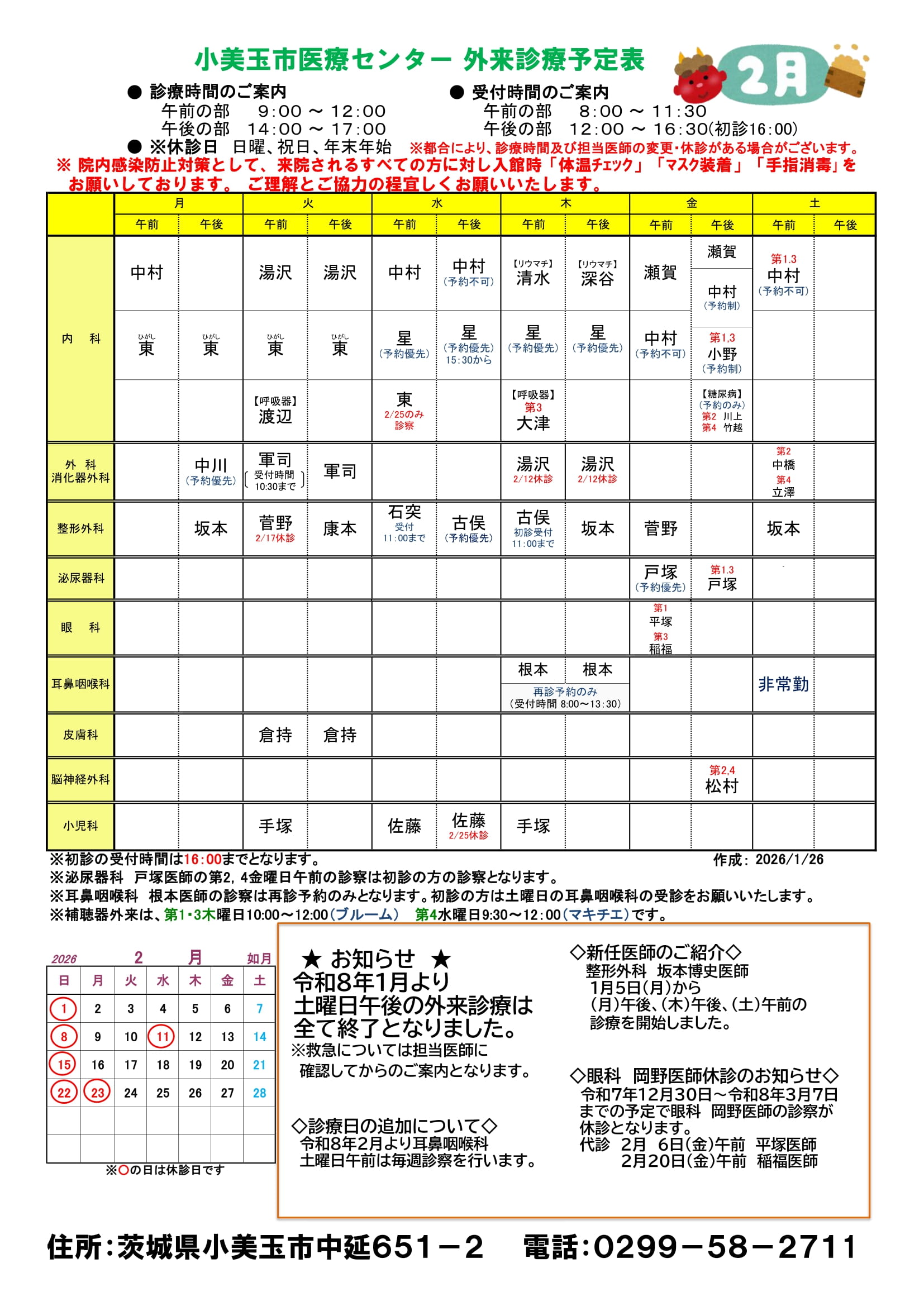 外来診療予定表
